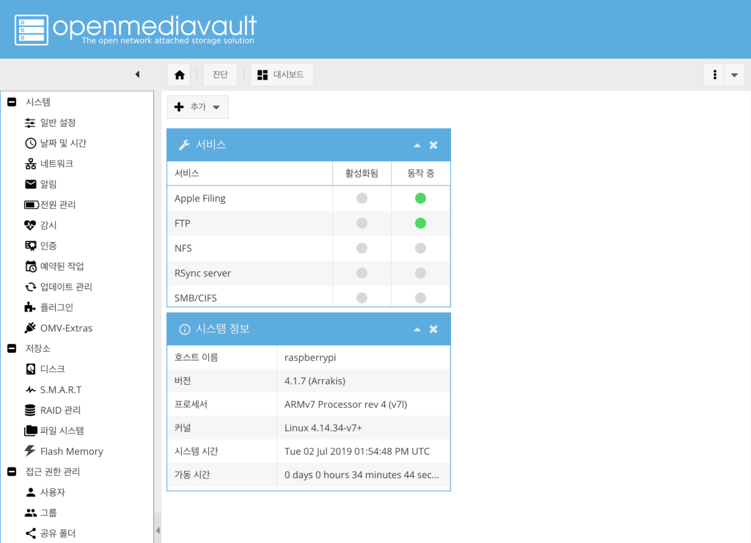 OMV 기본설정하기